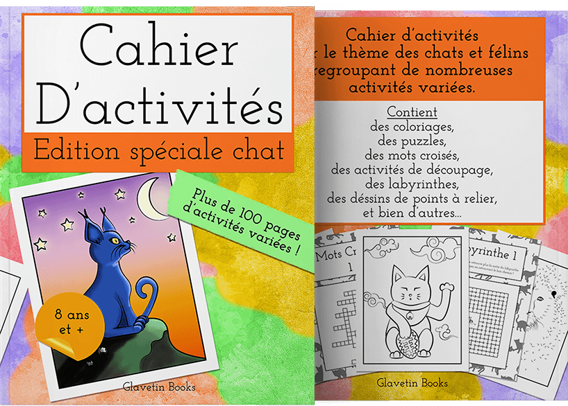 Cahier d’activités sur le thème des chats et félins regroupant de nombreuses activités variées comme des coloriages, des mots croisés, des labyrinthes, des messages codés, des dessins de points à relier et beaucoup d’autres…