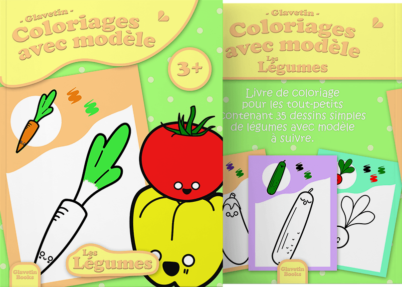 Contient 35 dessins simples de légumes aux contours épais avec modèle à suivre. Une à cinq couleurs par dessins.