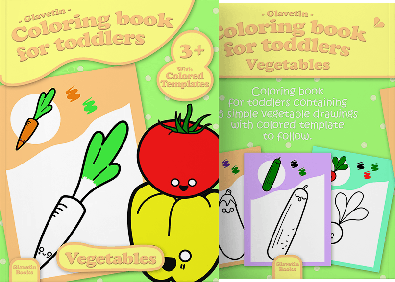 Contains 35 simple drawings of vegetables with thick outlines and a template to follow. One to five colors per drawing.