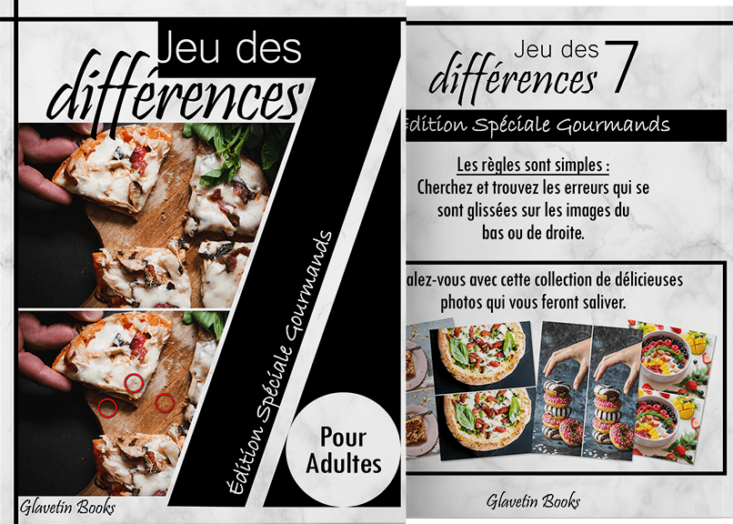 Jeu des 7 différences pour adultes sur le thème de la nourriture pour le plus grand plaisir des gourmands et amateurs de bons petits plats.