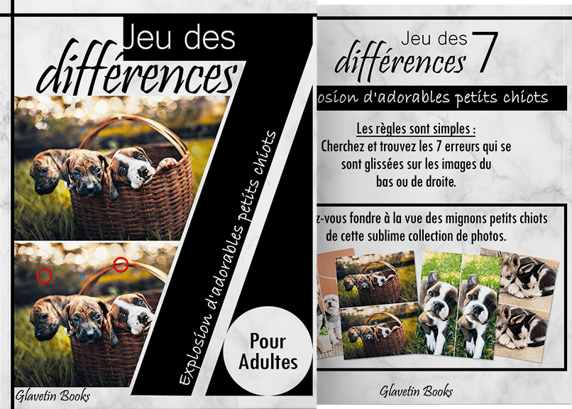 Jeu des 7 différences pour adultes sur le thème des chiots pour le plus grand plaisir des amateurs d’adorables petits chiots. Laissez-vous fondre à la vue des mignons petits chiots de cette sublime collection de photos tout en gardant votre cerveau à l’affût et ainsi entretenir votre sens de l’observation.