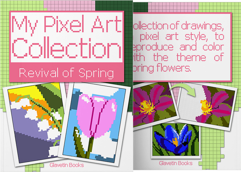 All the drawings are easy to reproduce and use 3 to 4 colors. This book contains 20 double pages with the model on the left and a blank grid page on the right so kids can reproduce the drawings directly in the book.