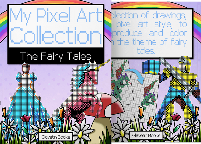 Contains 20 drawings of caracters, creatures and places often represented in fairy tales to reproduce and color. On the left page, you will find the model and on the right page the blank grid. The top and left sides of the grid have numbers and letters for a better reading of the grid.